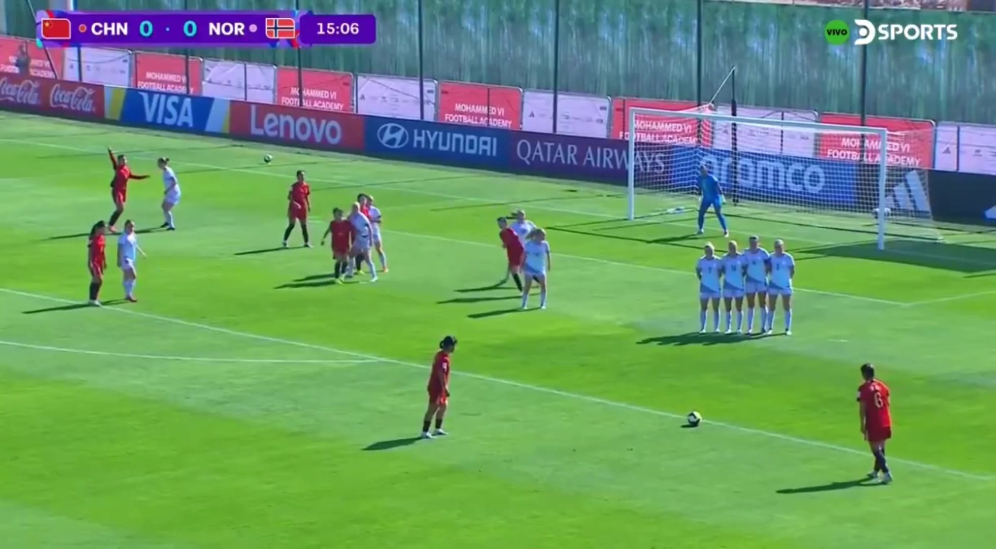 这球真漂亮陈睿琳任意球破门U17中国女足1-0挪威