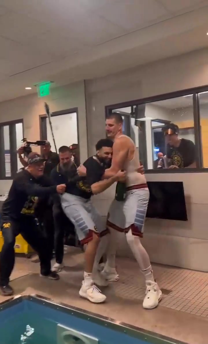卧槽这场面基情四射约基奇赛后抱着穆雷一起跳入浴池
