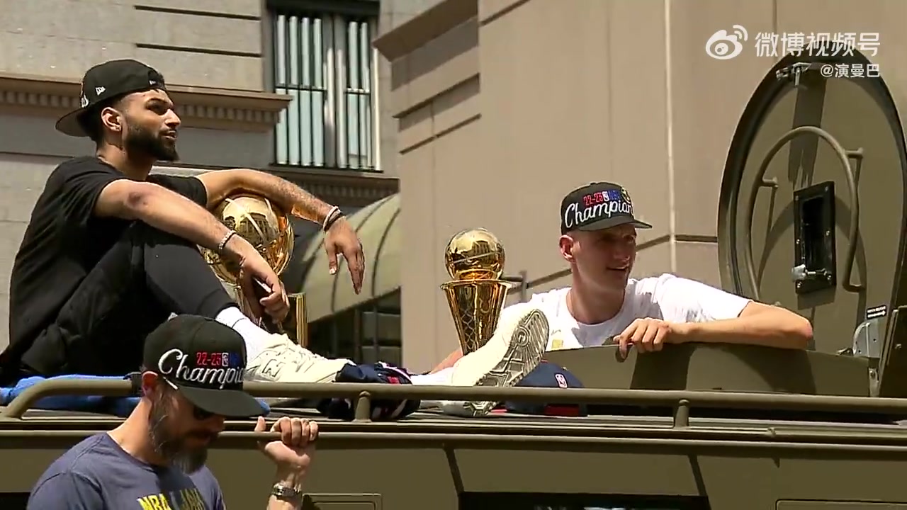 两座金杯闪闪发光穆雷和约基奇夺冠游行上一人带一座奖杯